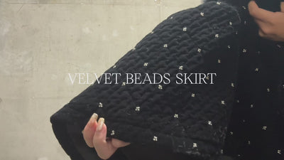 ………………………………………… しっとりとした艶を放つベルベットに、星屑のように煌めくビーズを散りばめた「VELVET BEADS SKIRT」 甘さを抑えた深みのあるブラックと上品な光沢が、特別な日にも日常のスタイリングにも馴染み、大人の女性に似合うミニスカートに仕上げました。 歩くたびにランダムな裾が揺れ、大人になっても忘れたくない“ときめき”を閉じ込めた、特別なミニスカートです。 ………………………………………… ▷デザイン <立体的なシルエット> ウエストに切り替えを入れることで、裾がふんわりと広がる立体的なシルエットを実現。 ランダムに揺れる裾が、動きに合わせて表情を変え、ドラマティックな印象を与えます。 <ビーズをちりばめた上品な生地> 程よい厚みのある生地に小粒のビーズを散りばめることで、上品かつ新鮮な表情に。 光を反射してきらめく生地は、ミニスカートでも子供っぽさを感じさせず、大人の女性も楽しめる華やかさを添えてくれます。 <大人に似合うミニ丈> ミニ丈でありながら甘すぎないバランスに設計。 ボリュームのあるフレアシルエットで脚をすっきりと見せながら、ウエストは引き締めることで、スタイルアップが叶います。大人でも楽しめるミニ丈に仕上げました。 また、インナーはパンツ仕様になっているので、安心して ご着用いただけます。 ……………………………………… <秋口> 薄手のニットやブラウス・ジャケットなどの秋アウターと合わせてもお楽しみいただけます。 重厚感のあるベルベット素材ですが、動きのあるシルエットのため、重たい印象になりすぎず、秋口から春先までお召しいただけます。 <冬> タイツやロングブーツと合わせれば、シーズンムードを高めつつ防寒性も確保できます。 クリスマスやディナーシーンなど、特別な日にもぴったりです。 ▷スタイリング <大人フェミニンスタイル> シンプルなニットと合わせ、足元はバレエシューズやフラットシューズでヘルシーかつ大人可愛いスタイルに。 <モードスタイル> ジャケットやヒールブーツを合わせれば、甘さとシャープさのバランスが取れたモードな着こなしに。 <カジュアルスタイル> カットソーやスウェットを合わせれば、甘すぎず、少しカジュアルな雰囲気でご着用いただけます。 ………………………………………… model:170cm 透け感:なし 厚さ:★★★★☆ 生地の伸縮性:なし 商品詳細: ・ウエスト後ろ部分はゴム仕様 ・ウエスト後ろ部分にファスナー付きで着脱可能 ・裏地はパンツ仕様(インナーパンツ付き) 原産国:中国 ※商品画像はサンプルを使用して撮影しておりますため、実際の商品の仕様と若干異なる場合がございます。 ………………………………………… ▷お手入れ方法 ・洗濯:手洗い可能。洗濯機の使用はせず、30℃以下の水で優しく押し洗いをしてください。 ただし、色移りやほかのものとの引っ掛かりを避けるため、単独洗いをしてください。 ・漂白剤使用:不可 ・タンブル乾燥:不可 ・アイロン:当て布をご使用ください。 ・濡れたまま長時間放置すると色落ちや色移り、生地が縮む原因になりますのでご注意ください。 洗濯後は、形を整えてすぐに陰干ししてください。 ▷保管方法 ・光のあたる場所や高温多湿になる場所での保管は避けてください。 ▷お取り扱い上の注意 ・摩擦や雨、汗などにより他の衣類や下着、淡い色のベルトやカバン、ソファーなどに色移りすることがあるので、コーディネートやお取り扱いにご注意ください。 下着等は同色系のご着用を推奨しております。 ・ビーズ刺繍の商品になります。ビーズは非常にデリケートなパーツになりますので、バックや指輪等に引っ掛けないよう、ご着用時は注意をして、優しくお取り扱いください。糸が切れた場合は、糸を無理に引っ張らないでください。 ・ベロア素材の特性上、着用中の摩擦により、他の衣類や下着などに羽毛が付着することがあります。 付着した場合は、ブラシ等で取り除いてください。