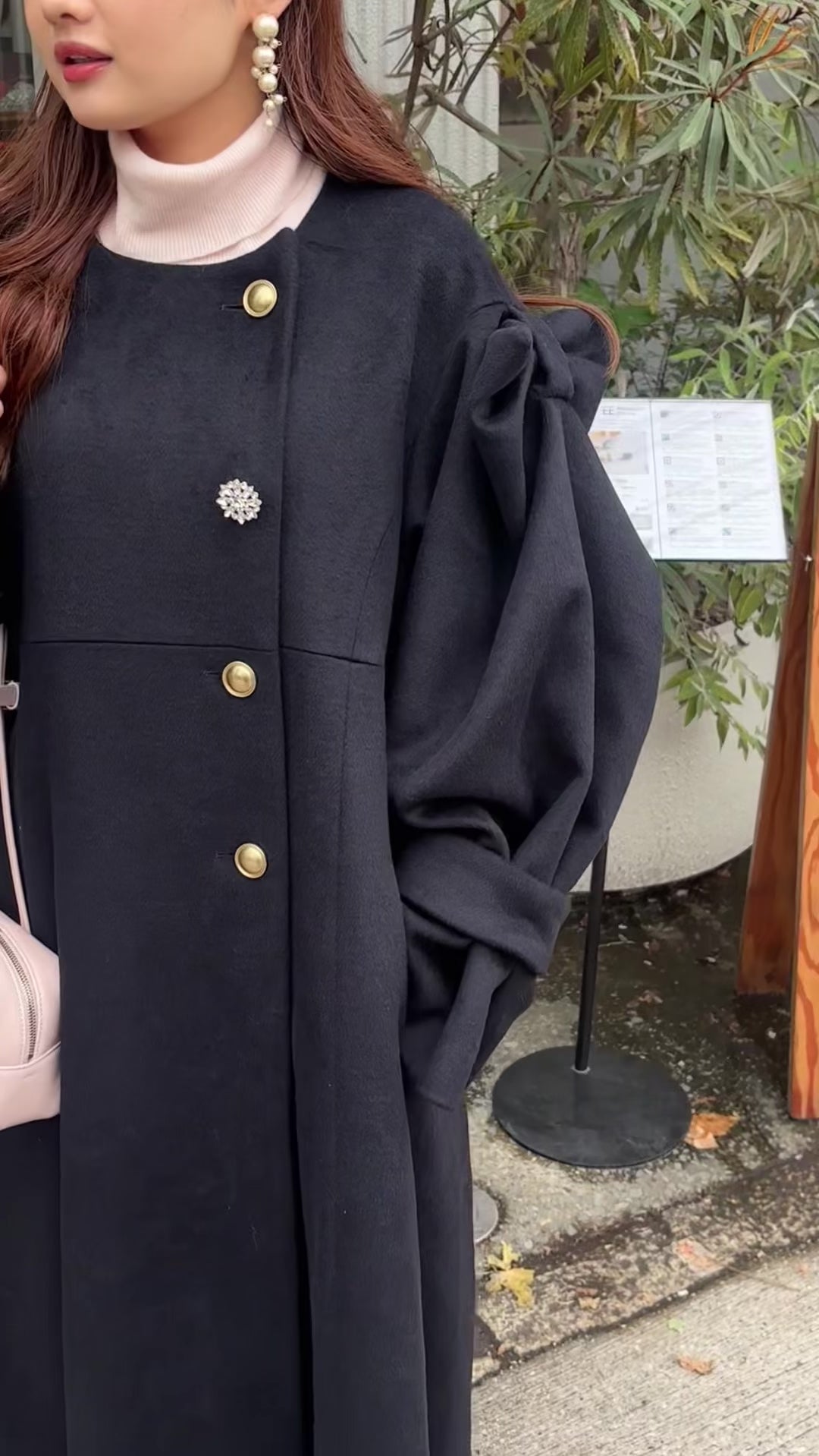 . . ecmile.創業当初から愛され続けている人気コートが、今年はディテールを新たにアップデート。 クラシカルな佇まいはそのままに、より上質に、より“可愛い”が引き立つ一着へと進化しました。 どの角度から見ても隙がなく、“愛しい存在感”を目指して仕上げました。 📕 目次 商品情報 Details - アシンメトリーのビジューボタンの秘密 Details - 腕にあしらったリ...
