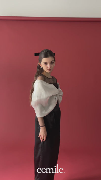 表地:ポリエステル100%(サテン・ジャガードともに) 裏地:ポリエステル100% リボン:ポリエステル100% チュール:ナイロン100%